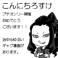 「こんにちろすけ」(Infinity Sky) ジョリー おさむ中心のギャグマンガを出す予定です。 他、デザーム中心のコピー本など出せたらなと思っております。 |